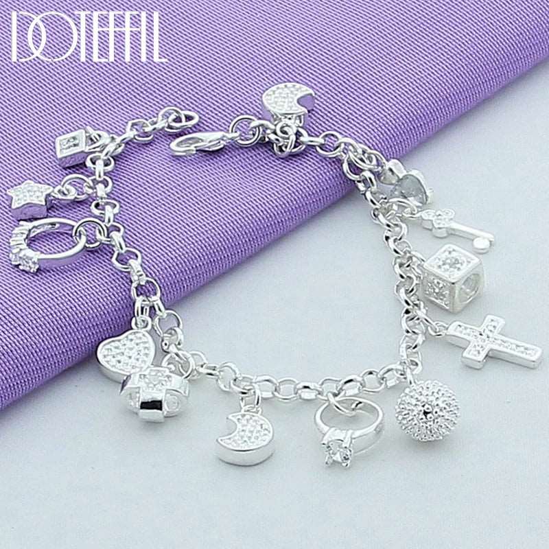 925 Sterling Silver 24K Gold Moon Heart Lock Cross Bracelet - Exquisite Fashion Jewelry