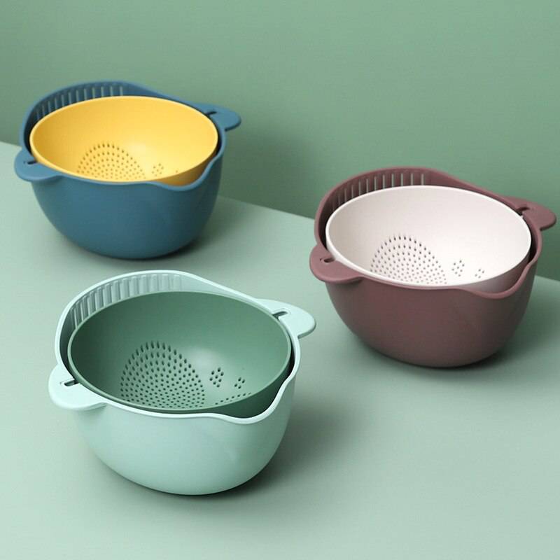 Manual Fruit And Vegetable Washing Machine ,Kitchen Double Drain Basket Washing, Storage Basket Strainers D