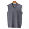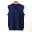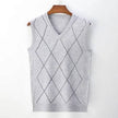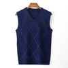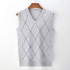 V Neck Argyle Sweater Vest, Casual Knitted Sleeveless Vest top Male Brand Clothes